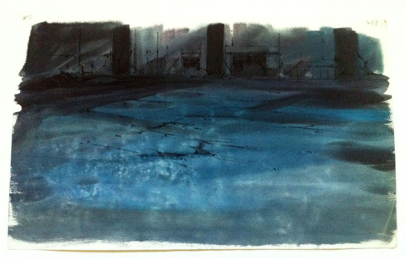 background c'est l'arrière plan le décor de fond on y peind une rue, une forêt, l'intérieur d'une pièce, des maisons etc... , ensuite le celluloide est placé dessus, le décor de fond est lui réalisé sur une feuille cartonné à part style canson, le décor est peind à la main avec beaucoup de détails le fond est minutieusement soigné, un celluloide avec son décor de fond vaut plus cher.
