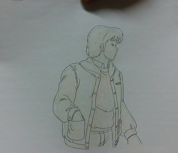 Léa est assise a son bureau, elle dessine sa bd, elle allume la radio, concentré elle peind a l'aquarelle, à un moment il parle de la météo elle tourne le bouton augmentant le son, une forte pluie est prévu en fin d'après midi.